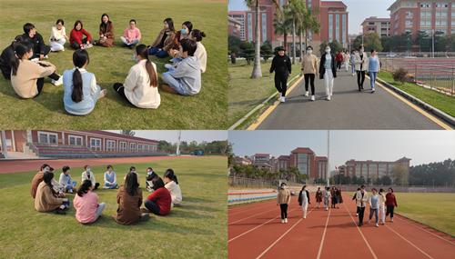 主題活動(dòng)包含繞校健步行活動(dòng)及操場趣味座談會(huì),女職工們精神飽滿、積極參與,一陣陣歡聲笑語在美麗的校園操場上響起。大家促膝圍坐,說一說自己的美好理想,談一談自己的奮斗目標(biāo),在愉快輕松的環(huán)境下分享著自己在工作與生活中的心得體會(huì)、人生感悟。