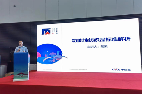 展會(huì)期間,中紡標(biāo)浙江公司總經(jīng)理助理胡凱在中國(紹興)功能性紡織品論壇上做了“功能性紡織品標(biāo)準(zhǔn)解析”的主題發(fā)言。胡凱從功能性紡織品標(biāo)準(zhǔn)體系,功能性服裝產(chǎn)品標(biāo)準(zhǔn)的選擇,功能性紡織品標(biāo)準(zhǔn)發(fā)展趨勢(shì)等三個(gè)方面做了專業(yè)分享。同時(shí),參展團(tuán)隊(duì)積極推廣檢測(cè)項(xiàng)目及公司業(yè)務(wù),詳細(xì)解答展位垂詢企業(yè)的相關(guān)咨詢,針對(duì)意向合作企業(yè)進(jìn)行一對(duì)一重點(diǎn)商談,進(jìn)一步明確合作方向,并邀請(qǐng)企業(yè)代表來公司實(shí)地參觀交流。