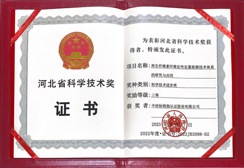 通用技術(shù)中紡院中紡標(biāo)"再生纖維素纖維定性定量檢測技術(shù)體系的研究與應(yīng)用"項(xiàng)目榮獲2022年度河北省科學(xué)技術(shù)進(jìn)步獎