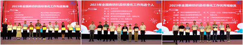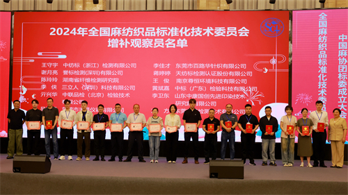 會議表彰了2023年度全國麻紡織品標準化技術委員會標準化工作的先進單位和個人,同時為新增補的觀察員頒發了證書。