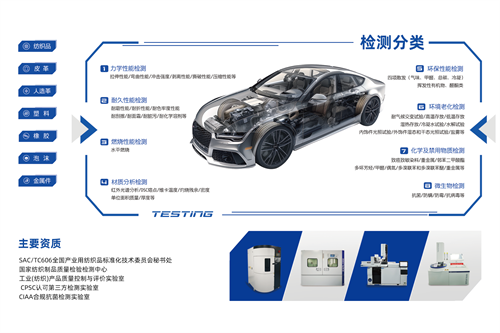 浙江中紡標憑借卓越實力獲得上汽大眾材料實驗室認可證書,可對汽車內飾材料力學性能、耐久性能、材質分析、環境老化、化學及禁用物質、車內空氣質量、微生物等80余項實驗進行檢測,全面覆蓋汽車材料多維度檢測需求。
