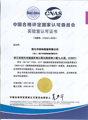 CNAS 實驗室認可證書(浙江)(20280829)
